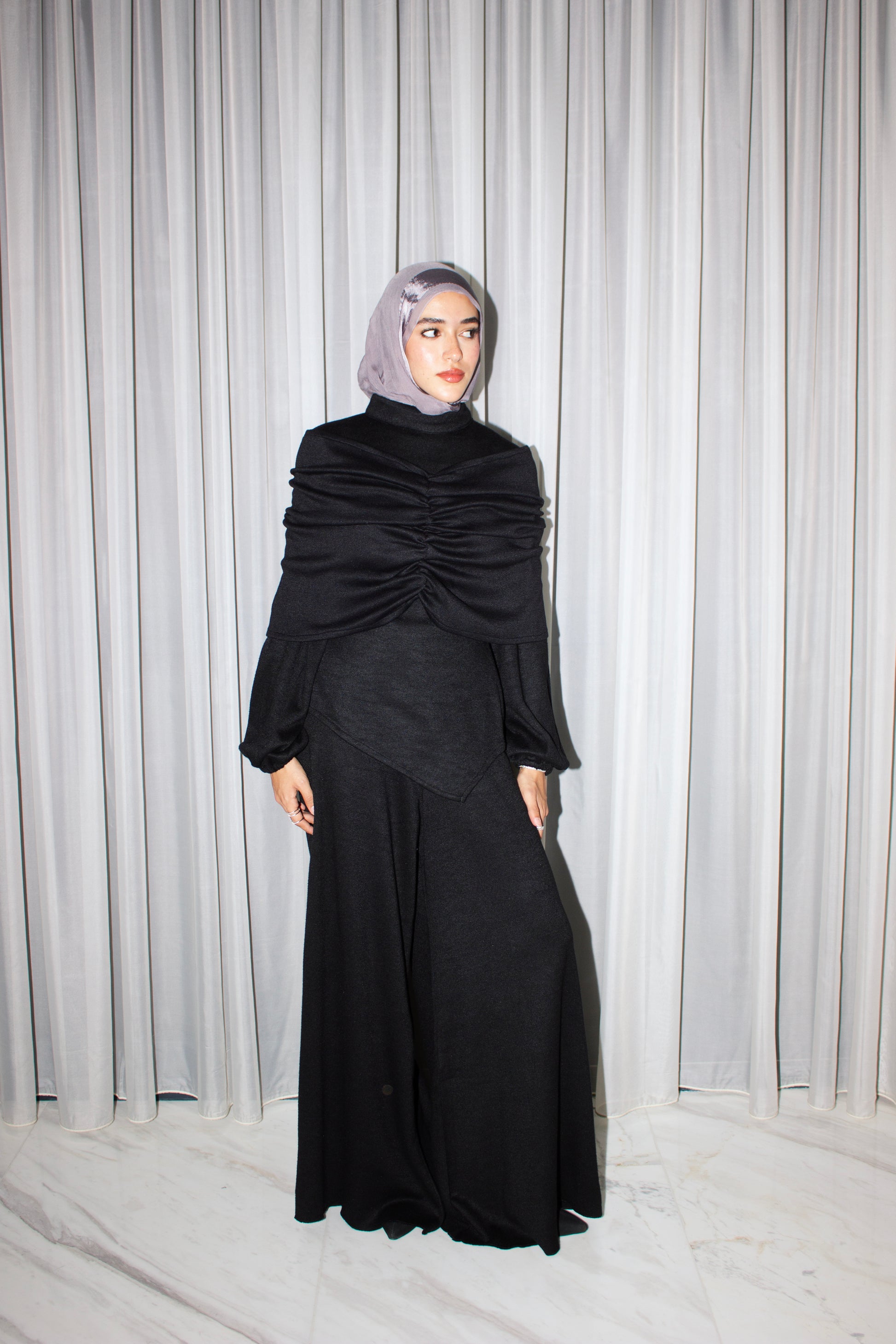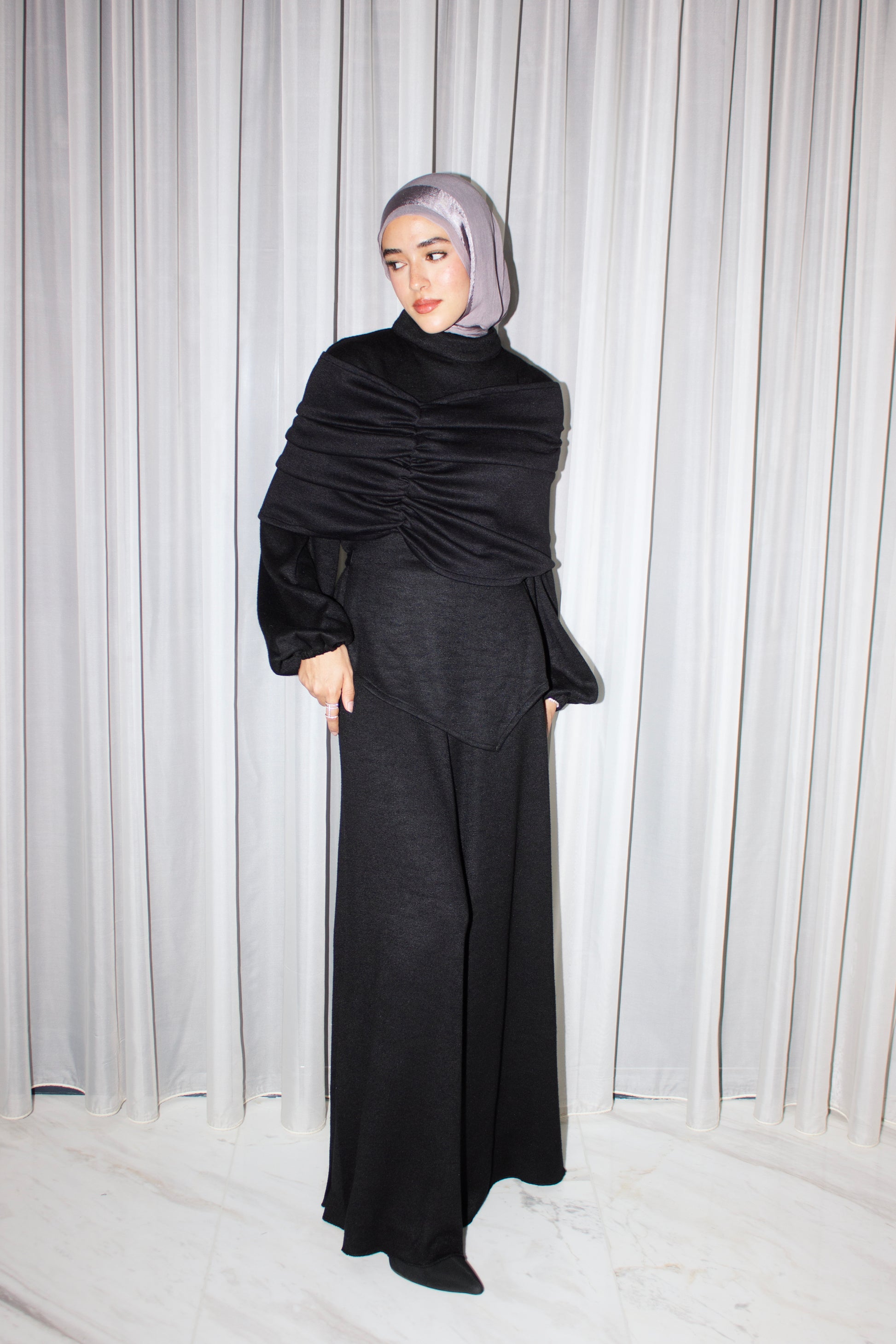 This versatile Bandeau Shawl 3-piece Soft Winter Set offers elegant options to keep you warm. Wear it in three different ways - without the shawl or with it, adjusted to your personal comfort. With its soft fabric, this set ensures a comfortable and stylish winter season.