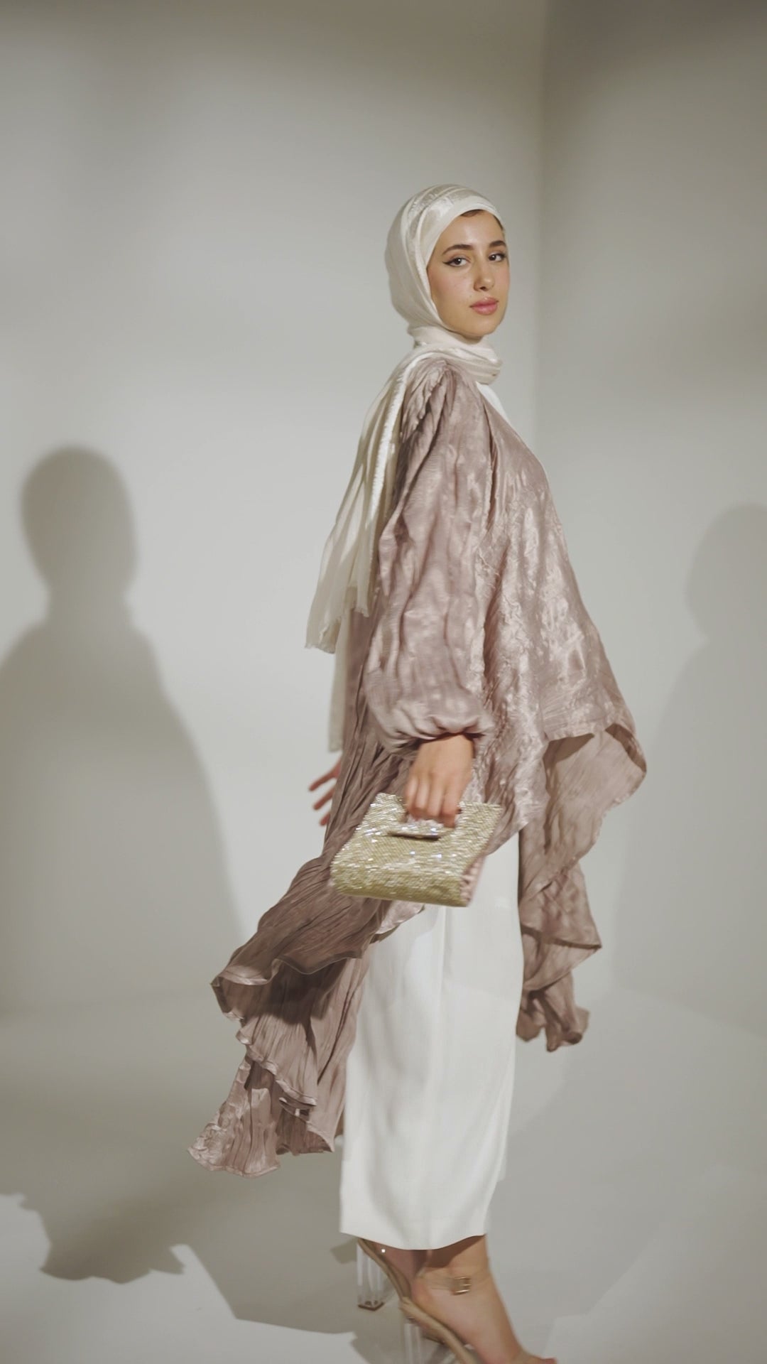 Crushed Emilia kaftan in Champagne Rose