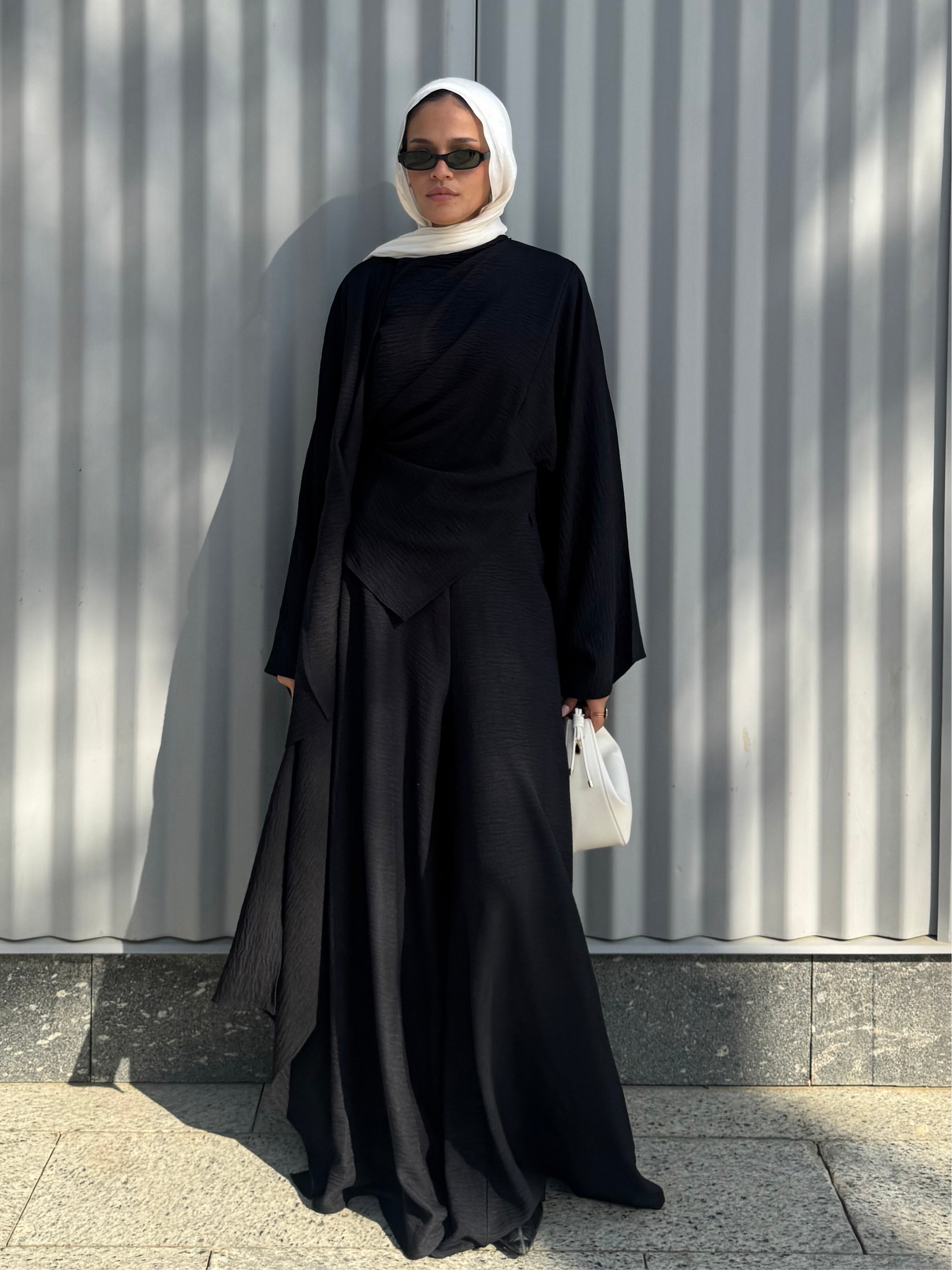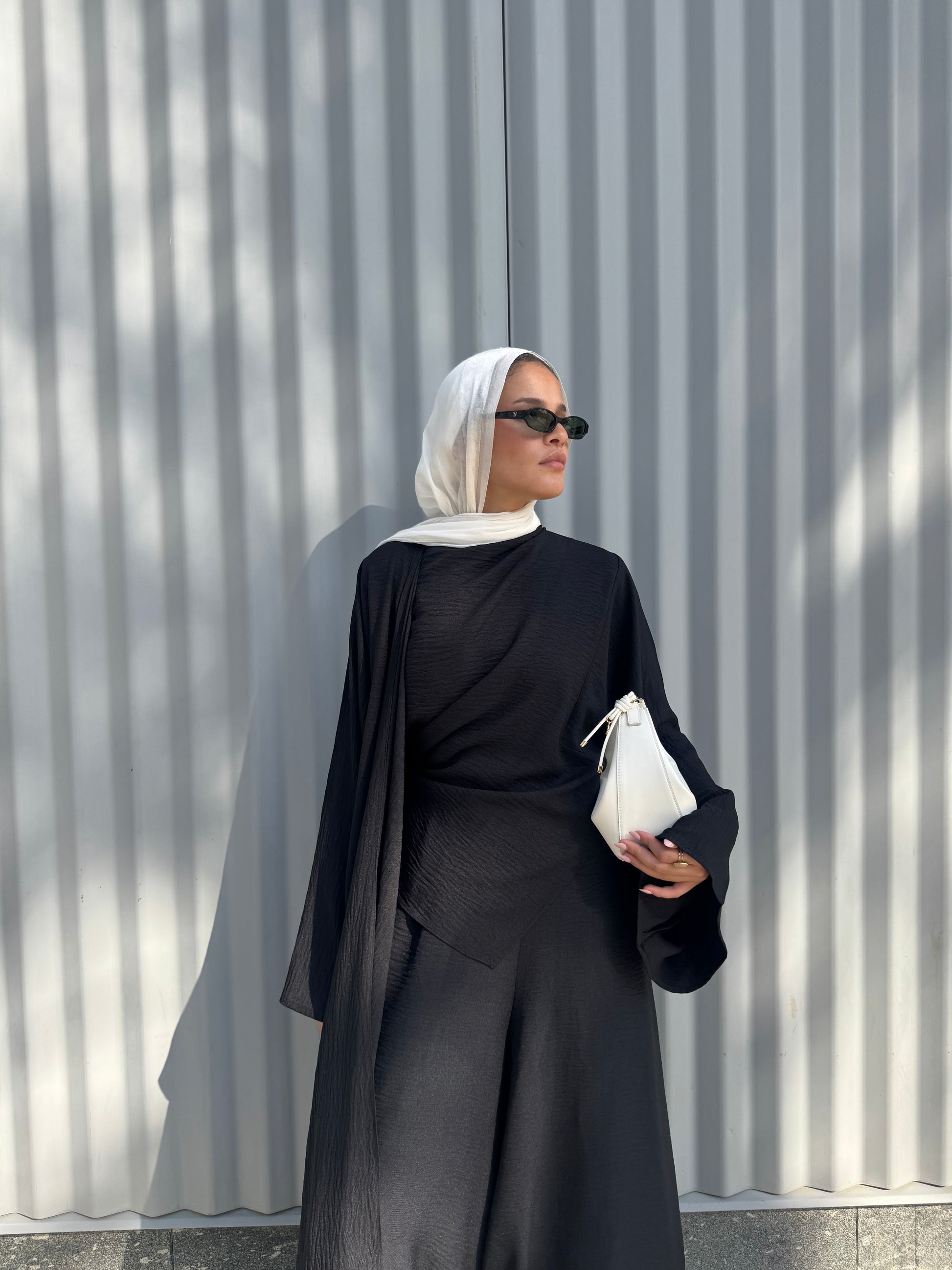 Introducing the Head Turner set in Black, a stylish and must-have addition to your summer wardrobe. Made from a linen blend, it is not only airy but also incredibly comfortable. With its elegant design, this set is sure to turn heads wherever you go. Don't miss out on this perfect summer fit.