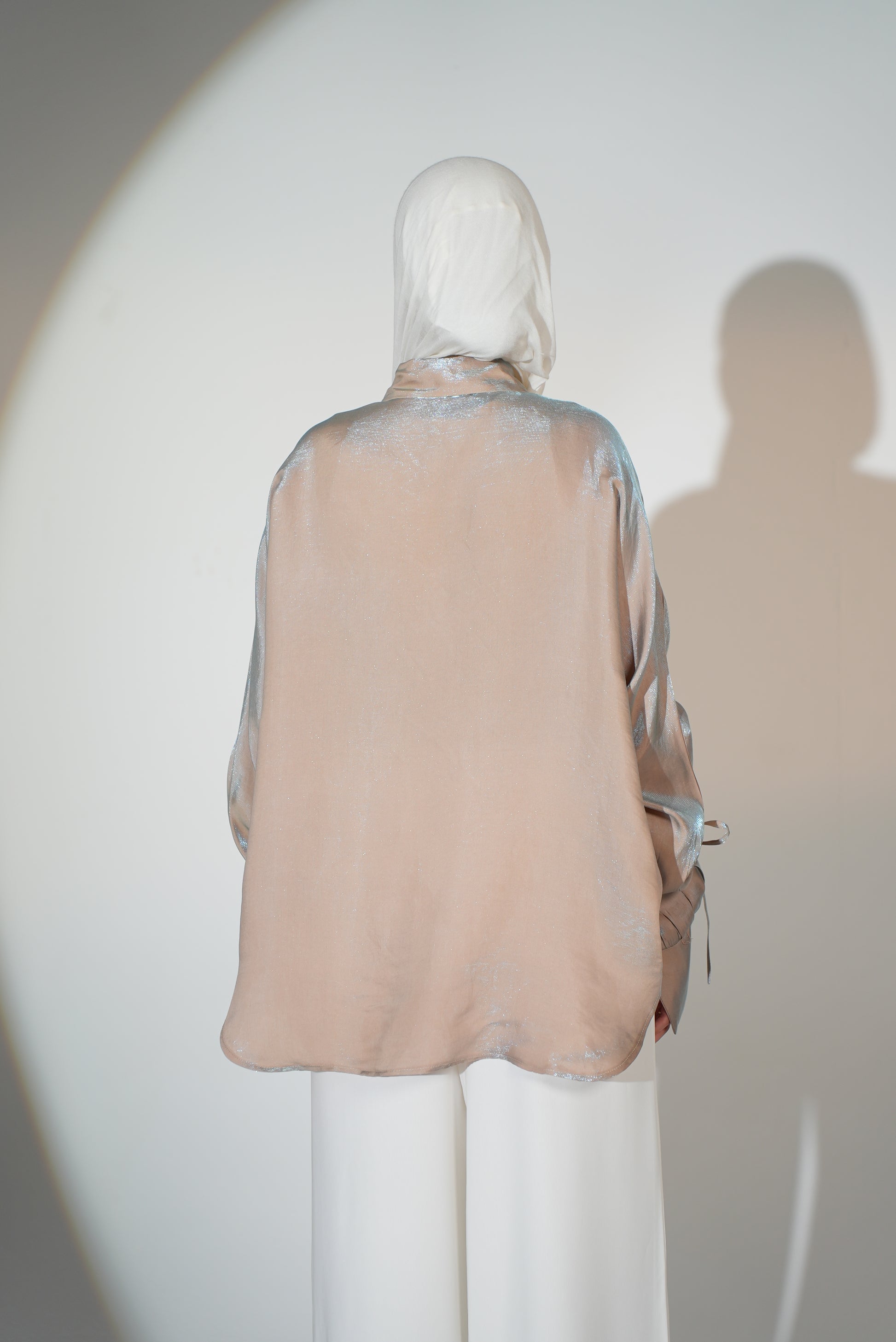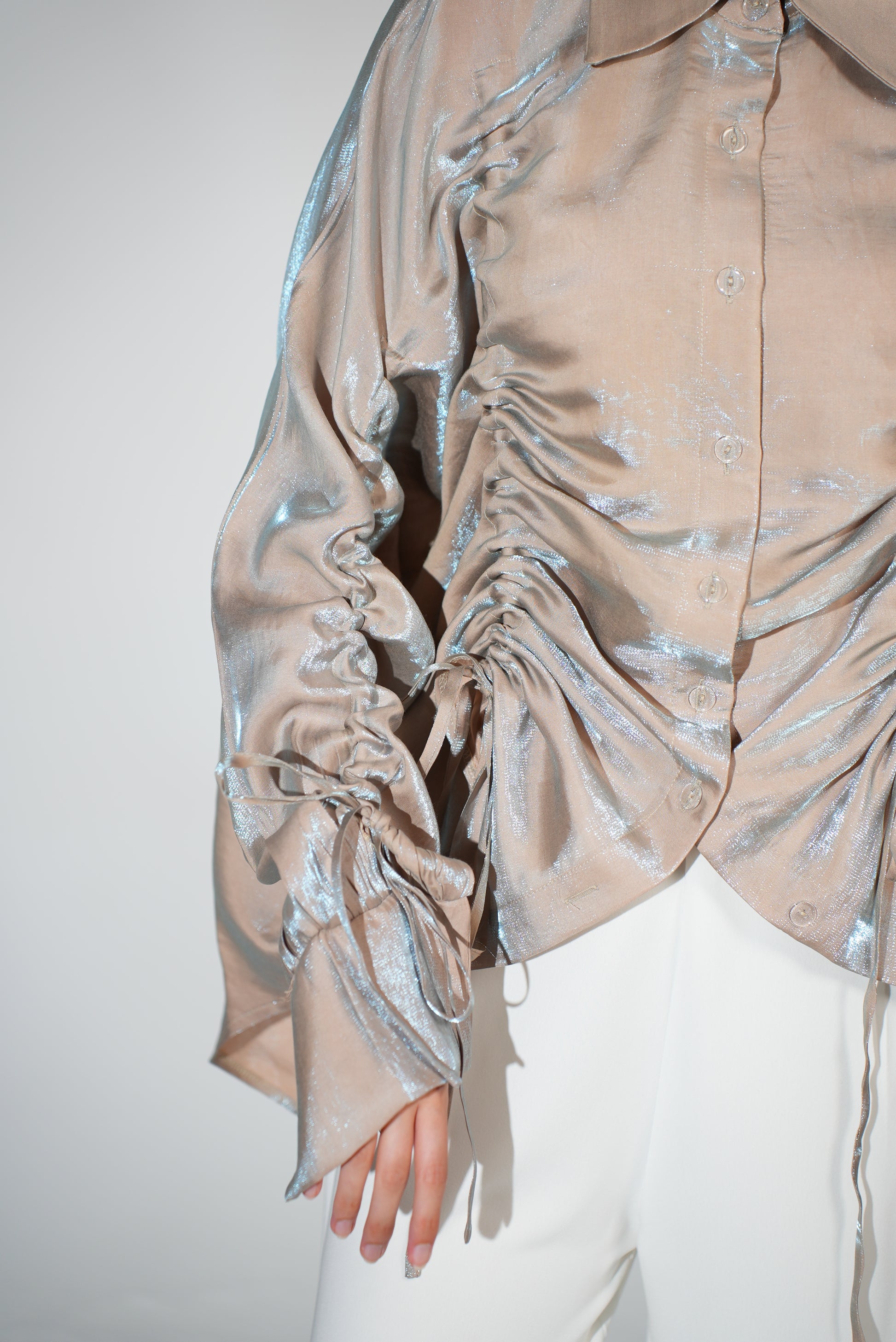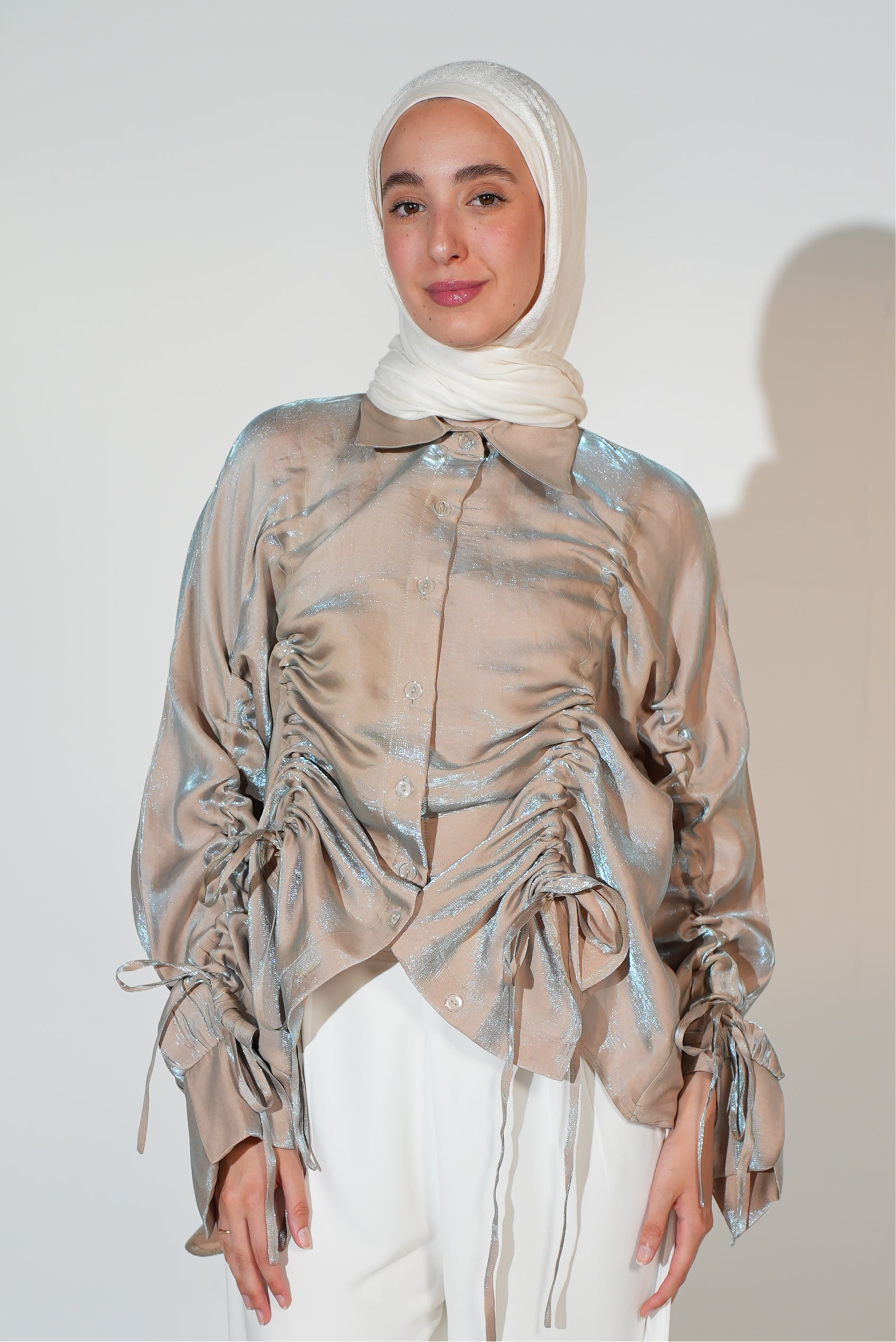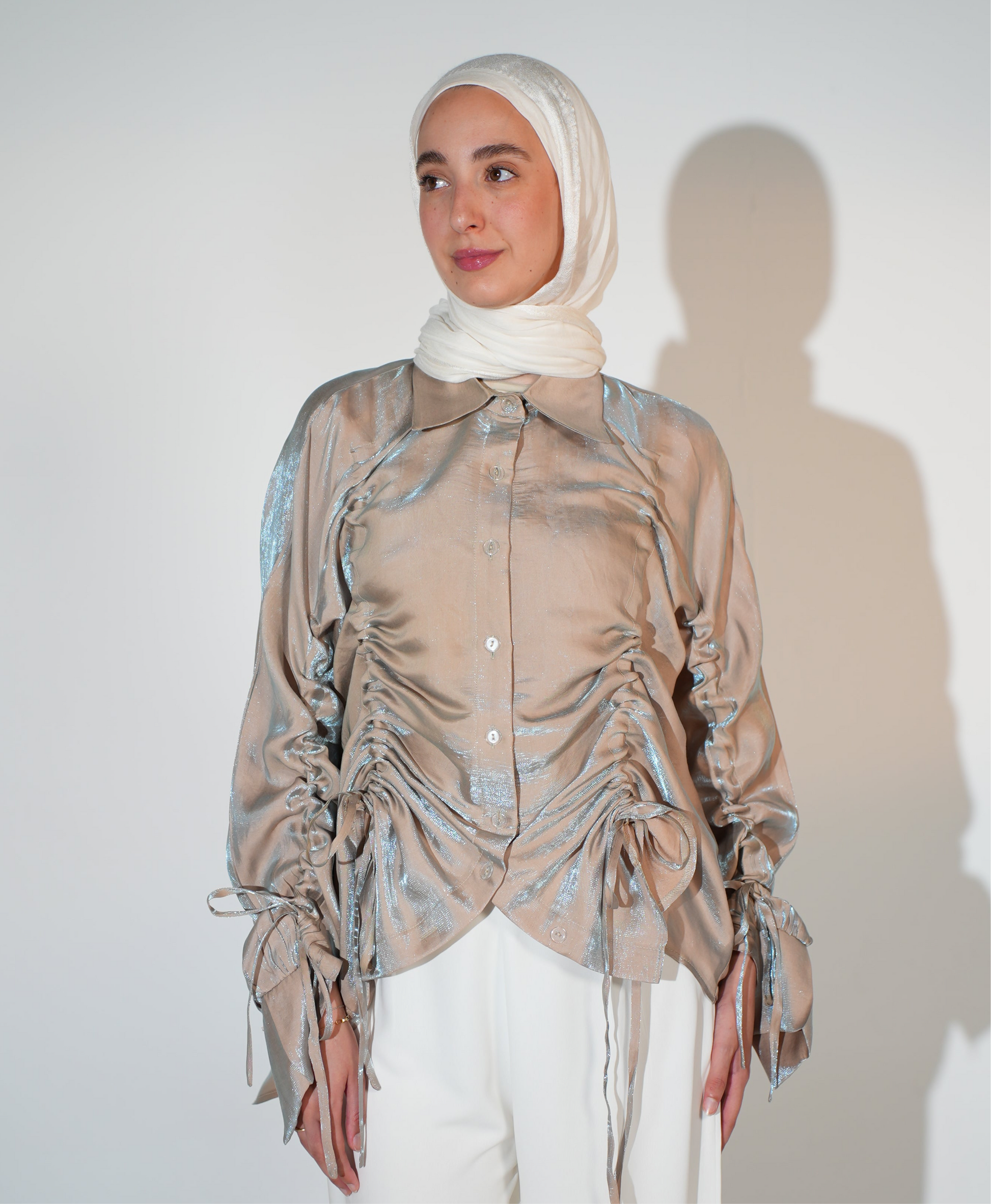 Rhea Drawstring blouse in beige x blue