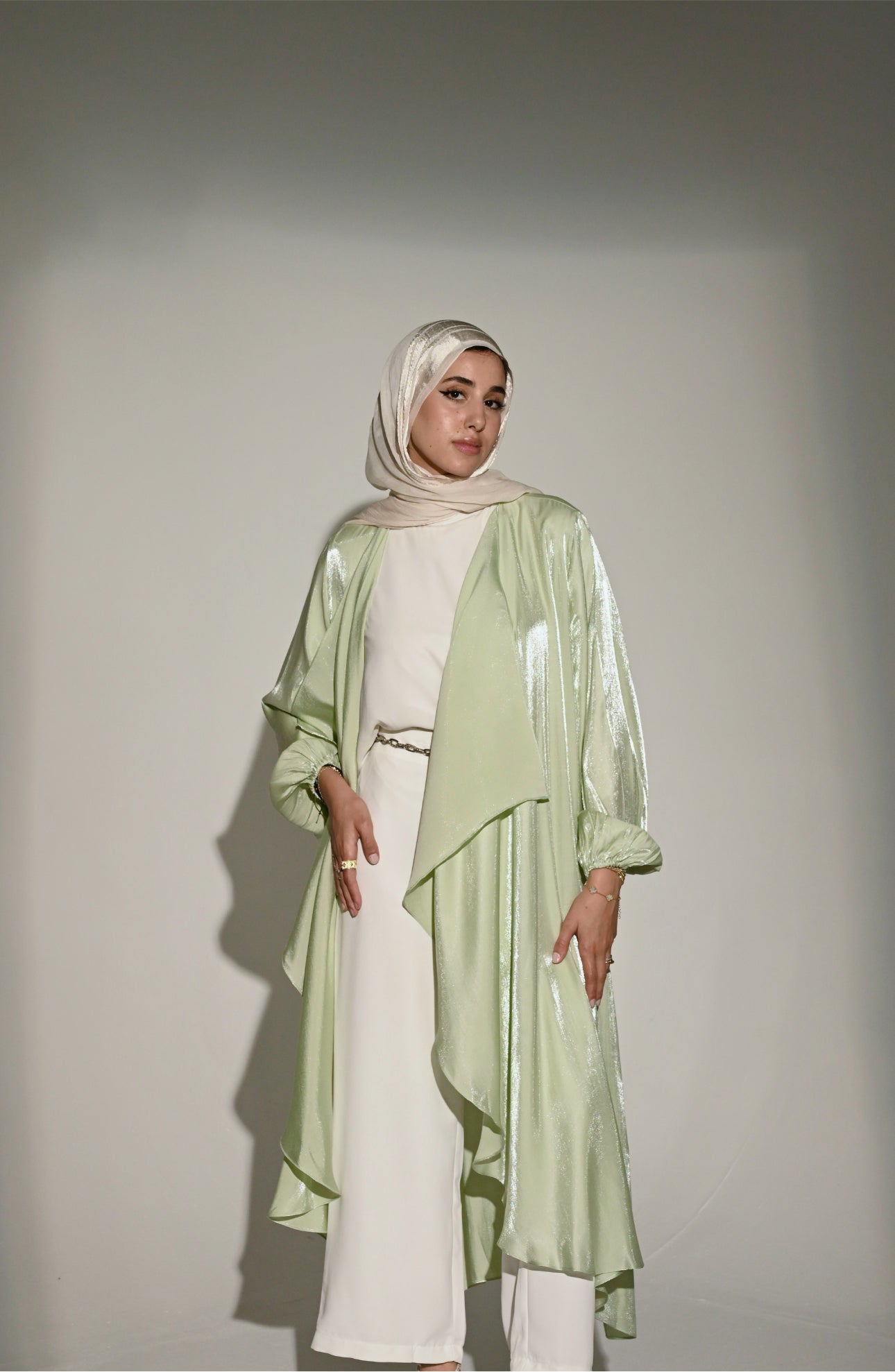 Elevate your style with Shimmer Emilia in Mint! This one-size garment is perfect for women who value simplicity and elegance.Add a touch of charm to any outfit with its subtle shimmer.