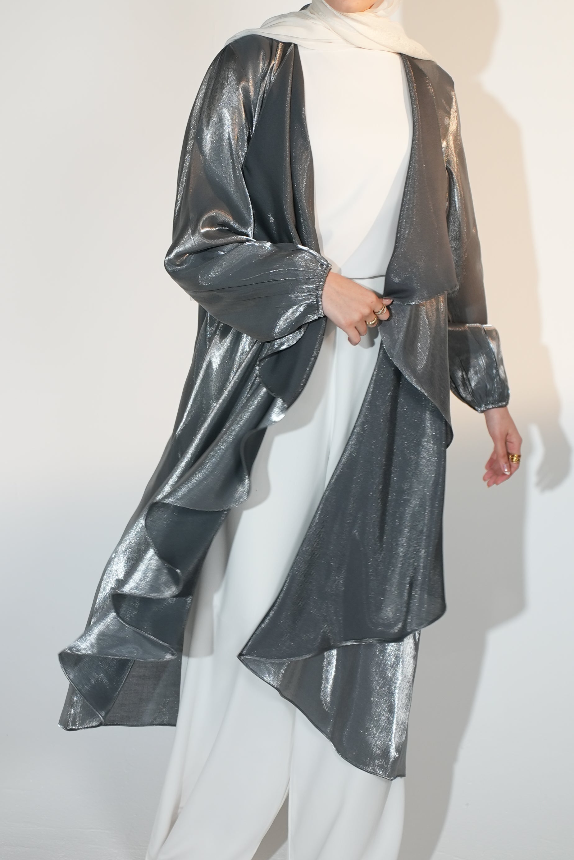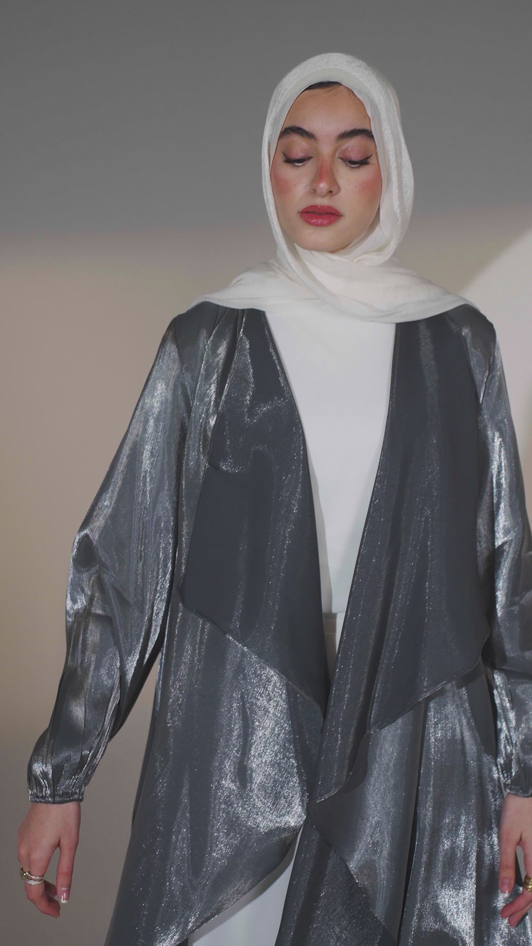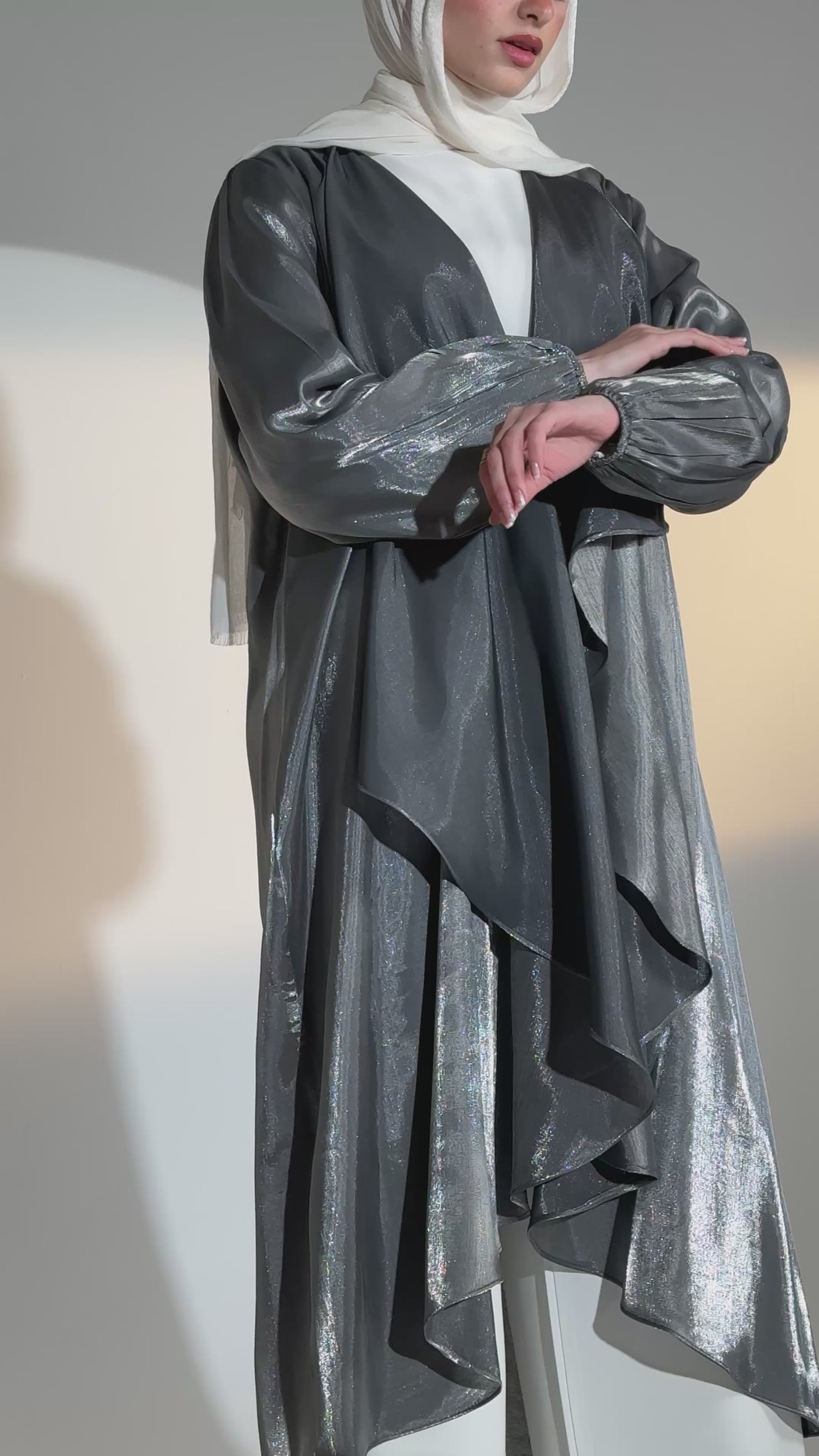 Introducing Shimmer Emilia, the perfect kaftan for your upcoming occasion. This elegant kaftan combines a shimmery silver/dark grey color with easy styling and a comfortable one size fit.