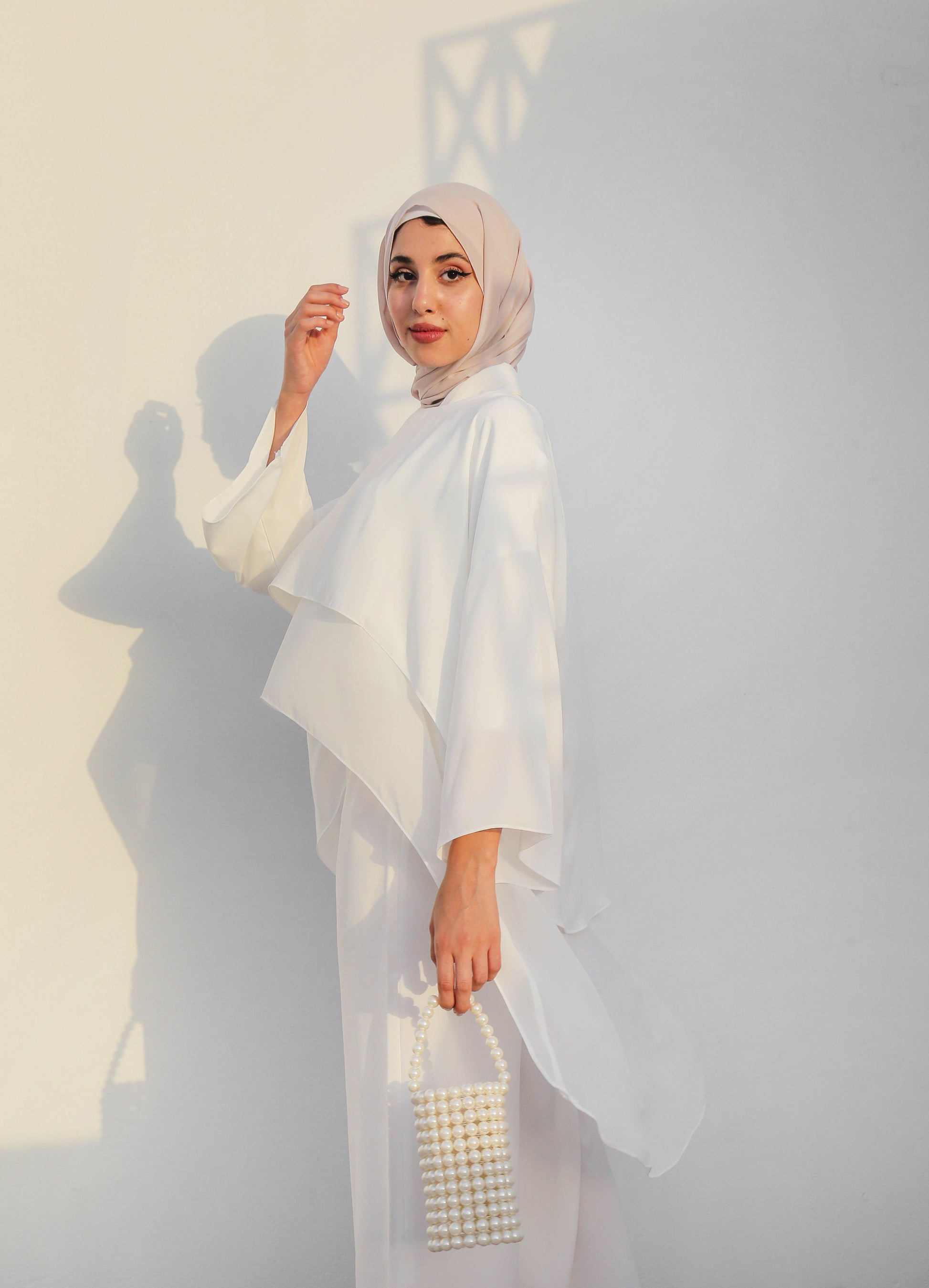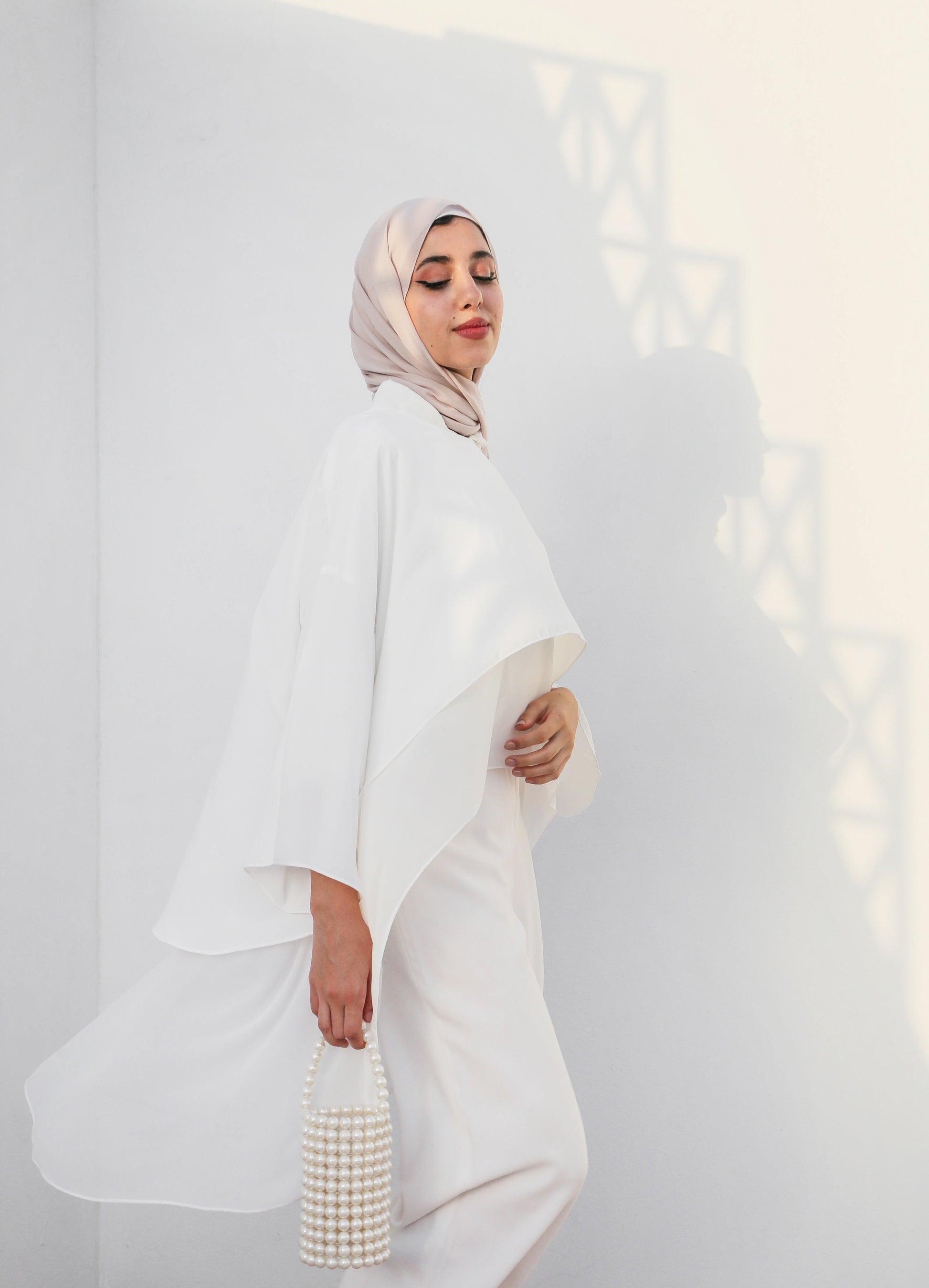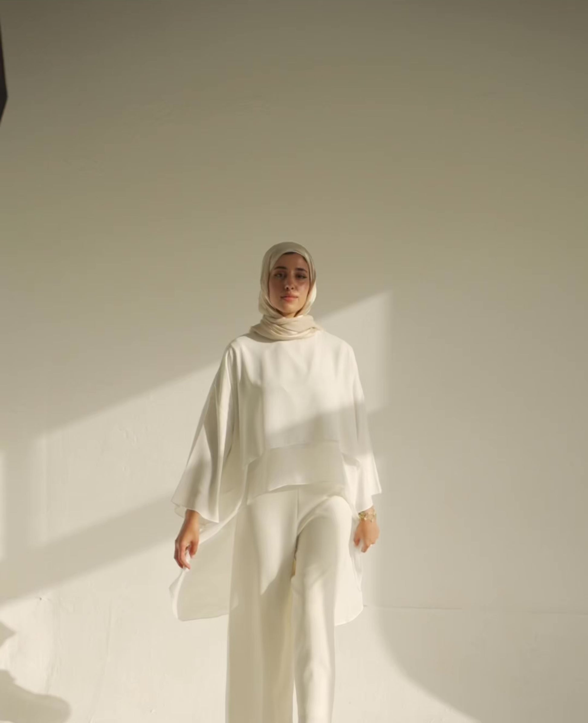 This exquisite top is crafted with premium and very soft Italian Crepe and chiffon fabrics, ensuring a flawless fit and irresistible comfort. Its oversized silhouette offers a relaxed yet stylish look, while the simplistic and feminine design adds a touch of elegance to any outfit.
