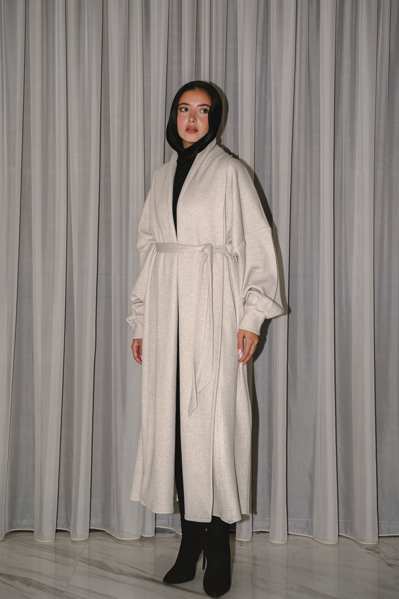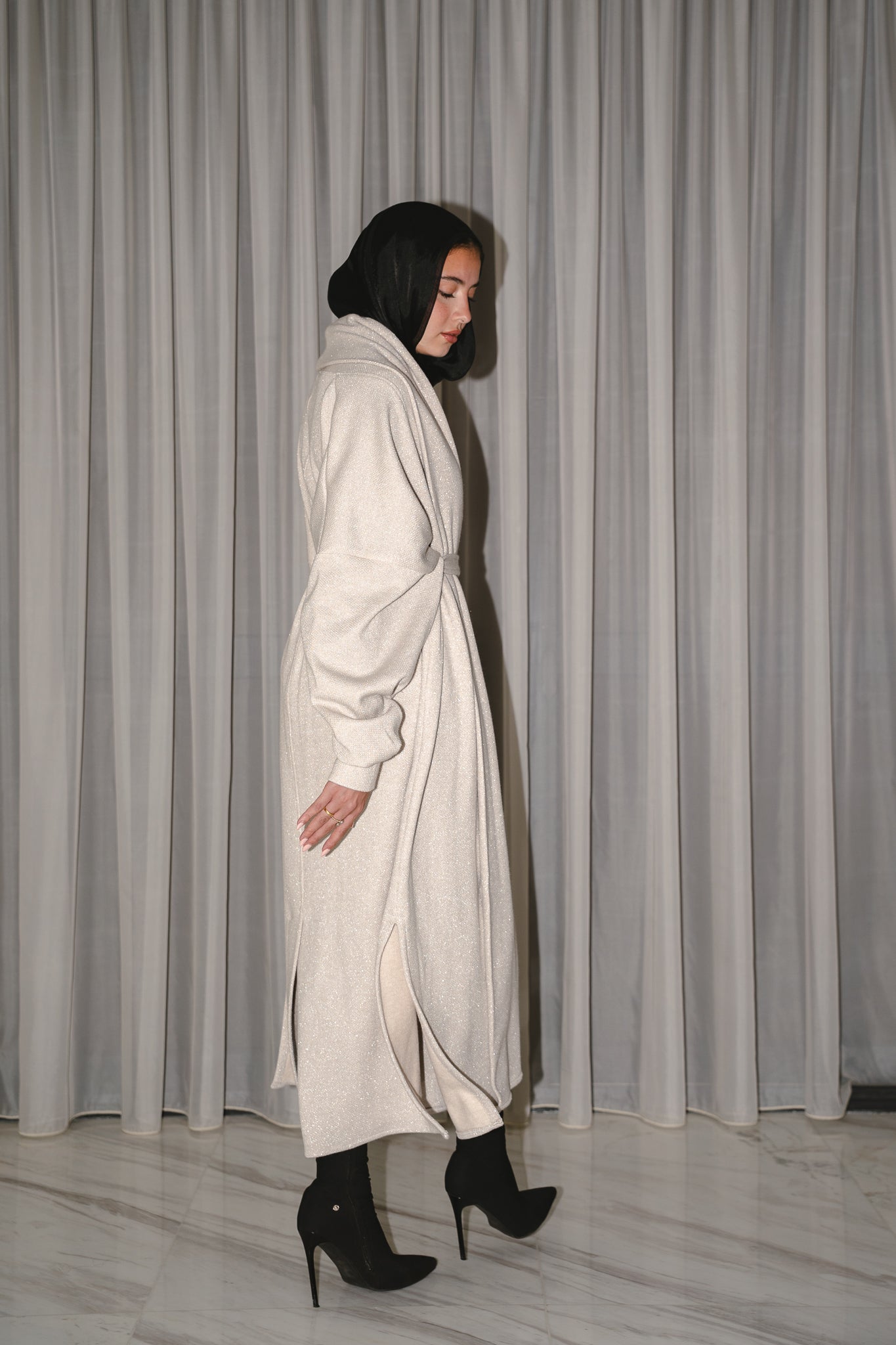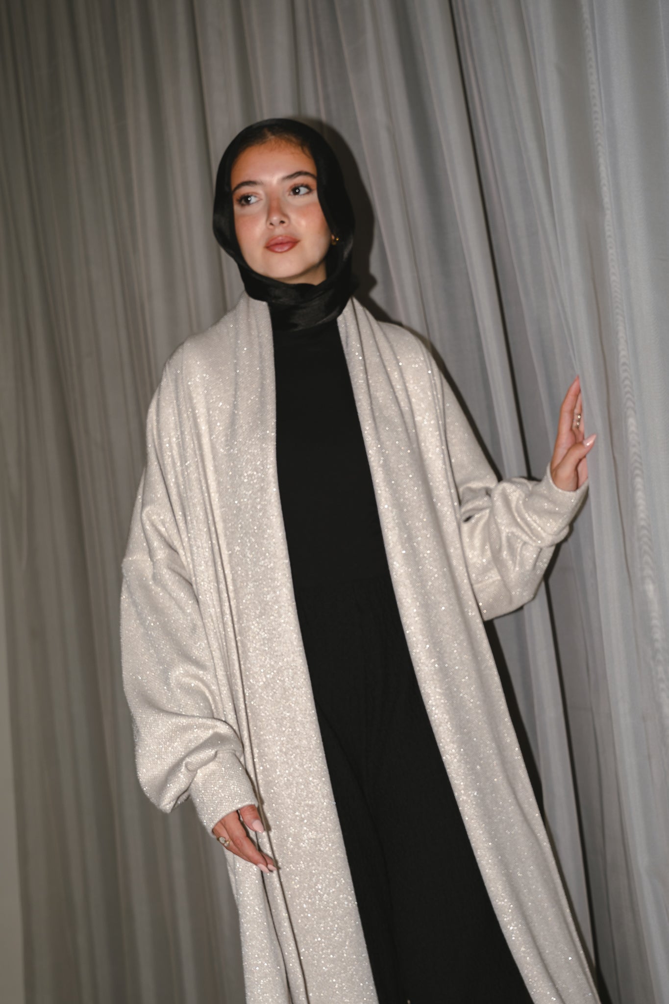 Limited Edition Sparkly Knit Coat in Creme x Silver Sparkle