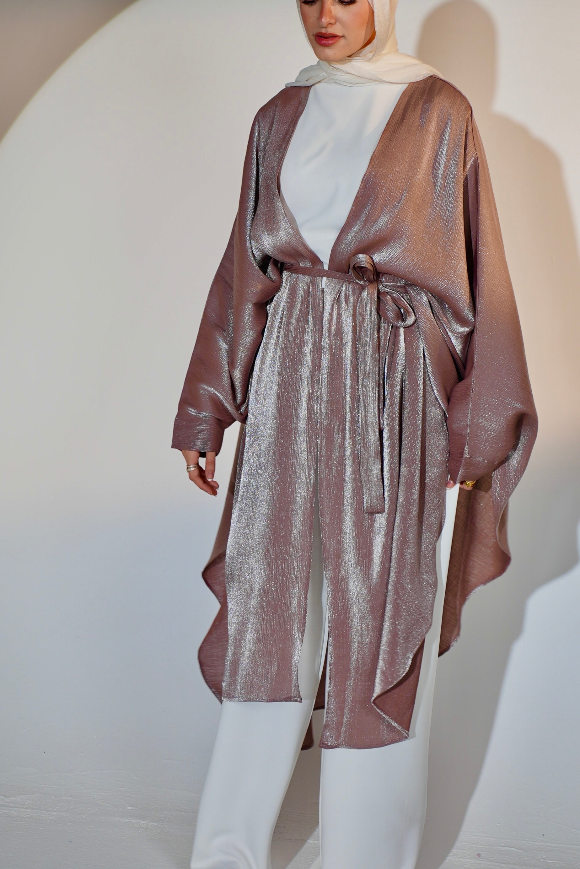 Meet our Starry Nights Shawl Kaftan you can style this master piece in 3 DIFFERENT WAYS. Wear it open, with its belt or drape the shawl on your shoulder which is our favorite way of wearing this beauty!