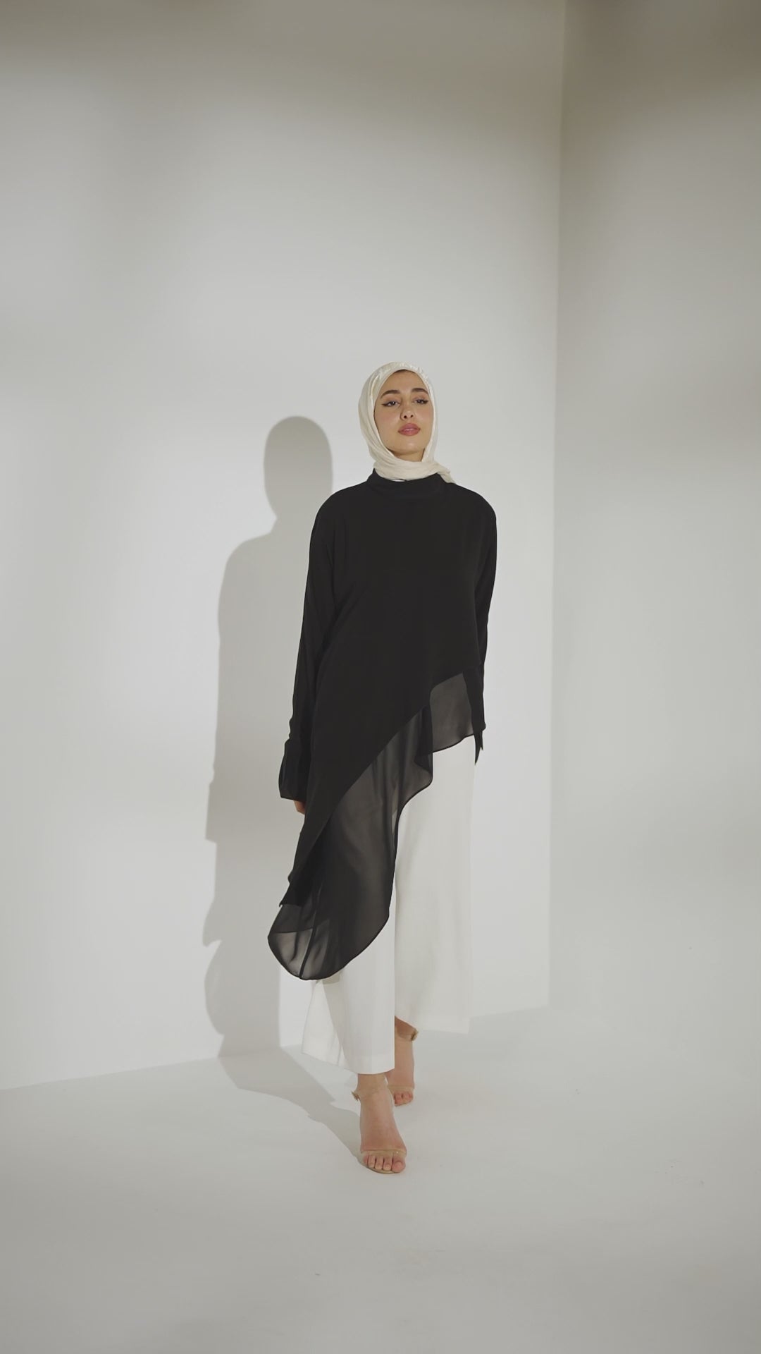 The Cynthia top in Black boasts a uniquely elegant design that exudes modesty and femininity. With its versatile one-size fit, this top is perfect for any occasion. Experience the style and comfort of this one-of-a-kind top.